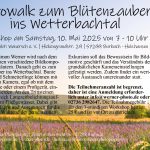 - Fotoworkshop mit Simon Werner: Blütenzauber im WetterbachtalPassend zum Frühlingserwachen findet eine neuer Fotowalk im Naturschutzgebiet Wetterbachtal statt. Der Workshop von Fotograf Simon Werner startet am Samstag, 10. Mai um 7 Uhr in …