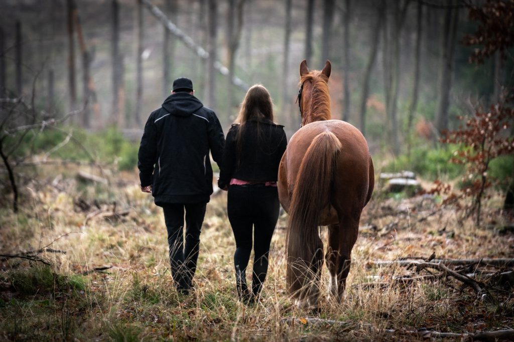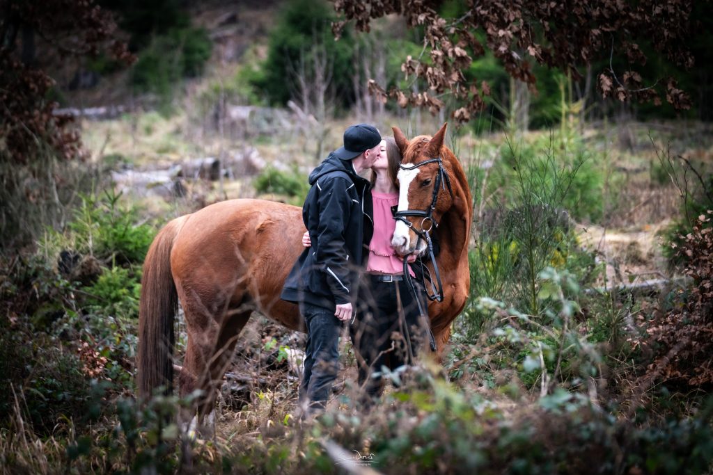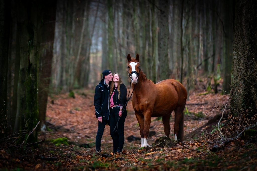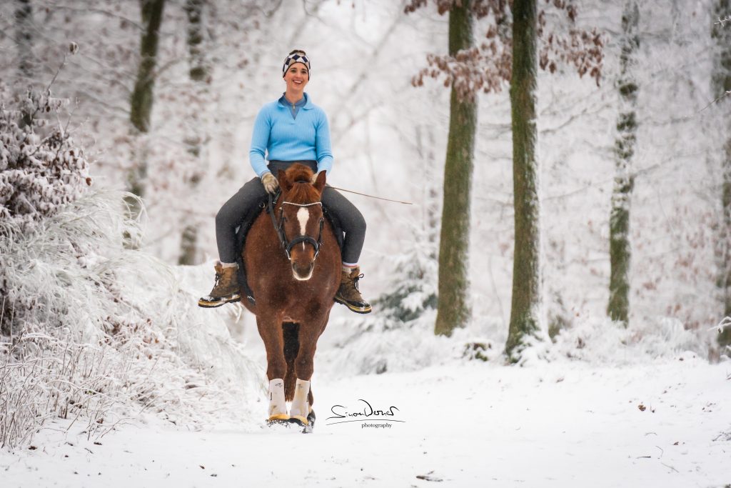 … natürlich auch mit Pferd. An diesem Shooting im Januar war das Tageslicht sehr dunkel. Den Fokus der Bilder haben wir daher bewusst an die Lichtverhältnisse angepasst. Die Stimmung der Aufnahmen gefällt mir besonders – ein Beweis, dass auch im Winter draußen wunderschöne Fotos entstehen können.