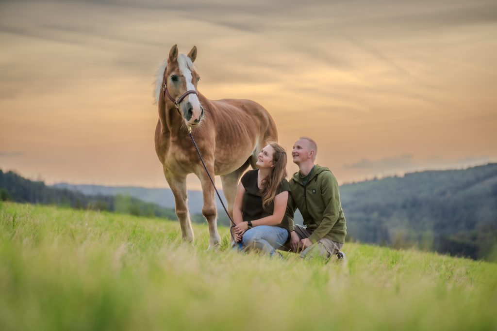 Donna, eine liebe Hafistute, durfte ich im Rahmen eines Gewinnspiel-Shootings fotografieren. Wir haben uns zum Sonnenuntergang in Herdorf getroffen. Zu dieser Zeit hatte ihre Besitzerin sich gerade verlobt. Den Verlobungsring haben wir direkt mit Donnas Kopf inszeniert – ein ganz emotionales und einzigartiges Bild. Die Aufnahmen fangen die Verbindung zwischen Pferd, Mensch und Moment auf eine ganz besondere Weise ein. Herzlichen Glückwunsch zum Gewinn!